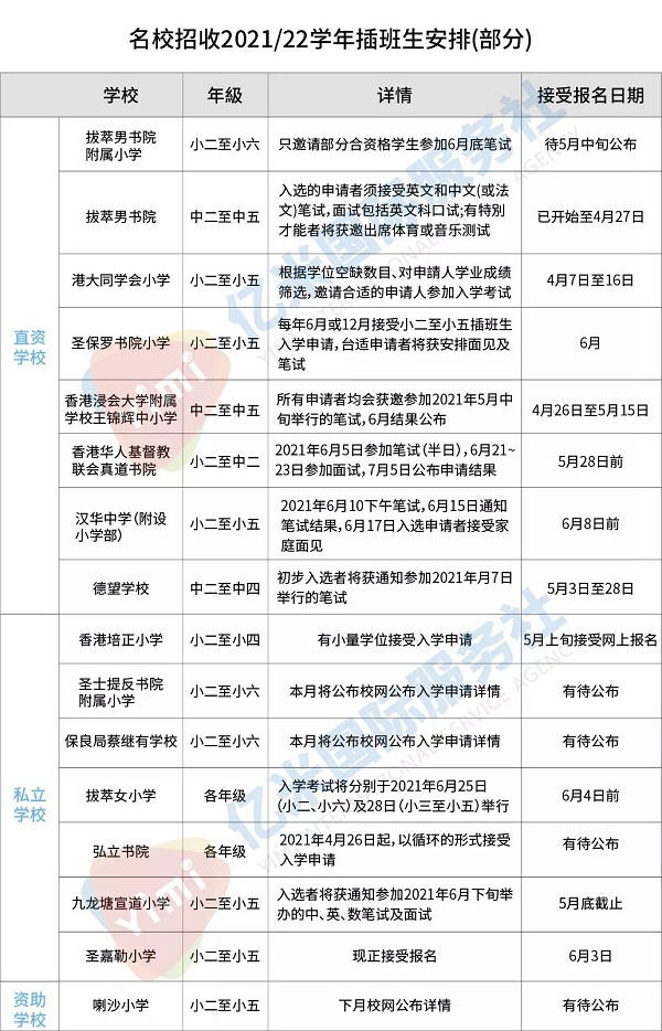 中二至中五級的插班生申請,4月27日報名就要截止。