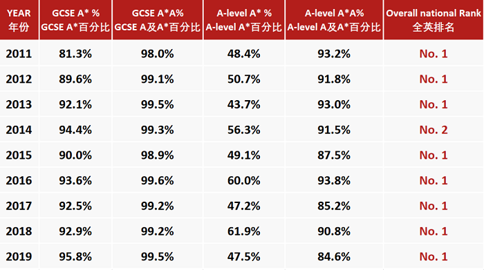 英國圣保羅女子公學是英國第一私校,過去10年的升學榜單中都是穩坐第一的。每年約90%畢業生的A Level成績達到A-A*,99%學生的IGCSE達到A-A*。近半數的畢業生都能進入牛津、劍橋大學,其余進入美國常春藤盟校和英國羅素前茅大學。