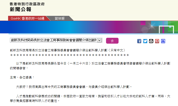 香港政府動(dòng)用20億元吸引國際創(chuàng)科人才赴港工作