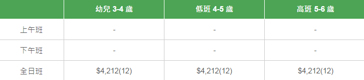 學校有參加「幼稚園教育計劃」,以下列出扣減政府資助后不同班別的全年學費和期數。